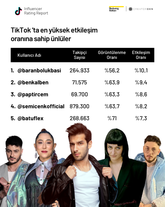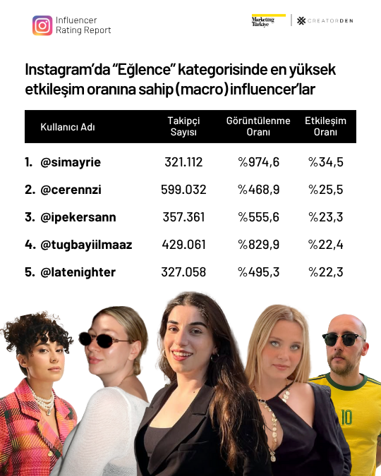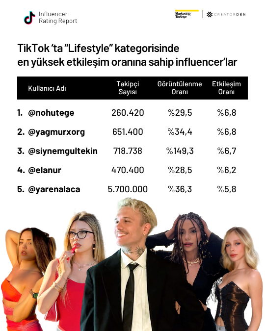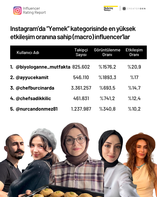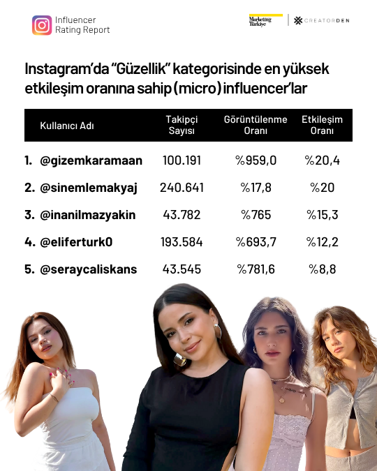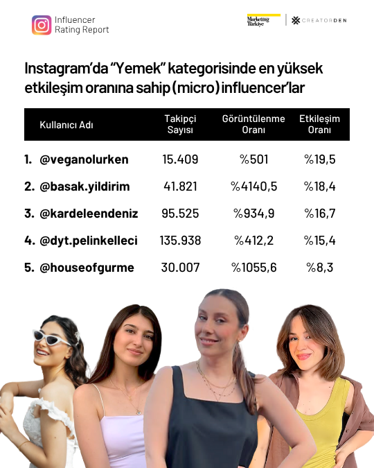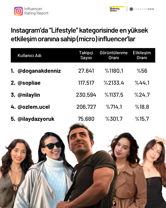 Instagram’da ise mikro influencerlar güçlü performanslarıyla dikkat çekiyor. Lifestyle kategorisinde Doğan Akdeniz, güzellik alanında Gizem Karaman ve yemek kategorisinde @veganolurken kullanıcı adıyla bilinen Başak Deniz, takipçileriyle kurdukları sağlam bağ sayesinde listenin üst sıralarında yer aldı.