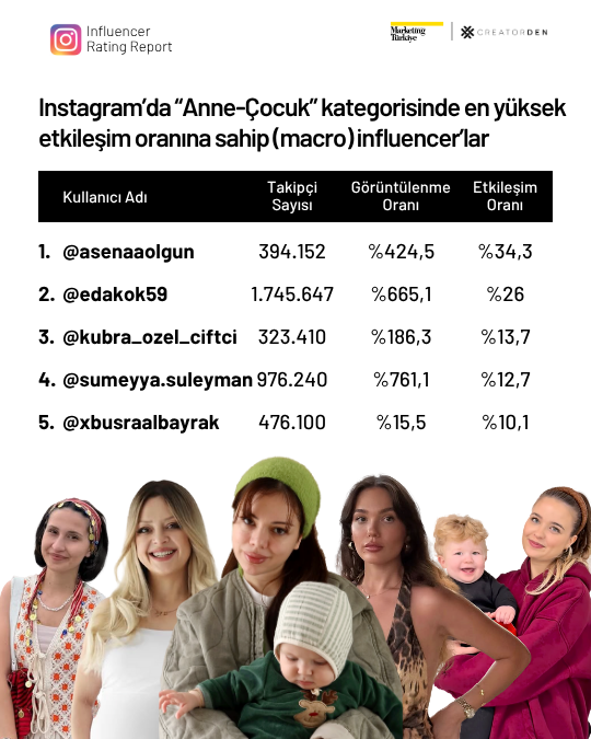 Makro influencerlar arasında eğlence kategorisinde Simay Dal, anne-çocuk kategorisinde Asena Olgun istikrarlı performansıyla liderliğini sürdürürken, güzellik alanında Firuze Dal yüksek etkileşim oranlarıyla dikkat çekiyor.